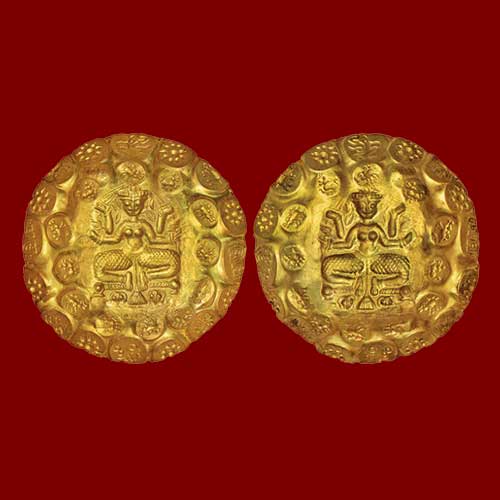 Kakatiyas of Warangal, King Prola II Gold PMC Two-and-a -Half Gadyana War Goddess Type Gadyana Sold For INR 4,90,000