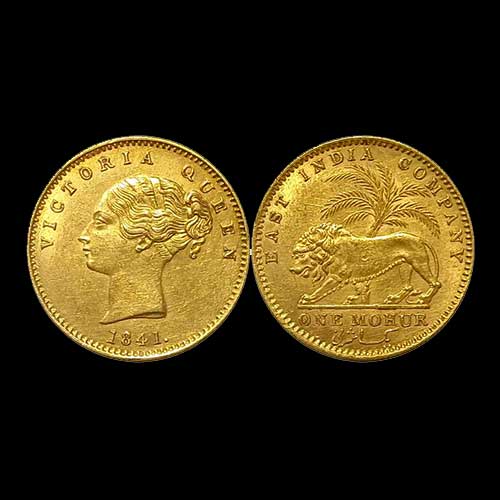 A Gold Mohur of Queen Victoria, weighing 11.65 grams, was sold for INR 380000 in an auction held in ...