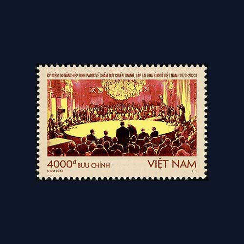 The Vietnam "The 50th Anniversary of the Paris Peace Accords" stamp was issued on 2023-01-27 to comm...