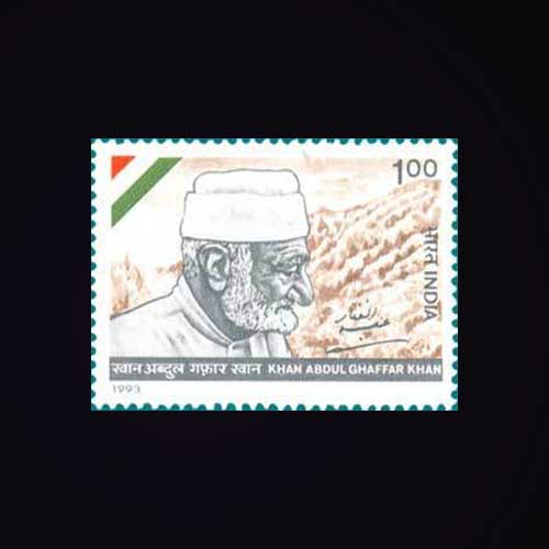 On August 9, 1993, India released a commemorative stamp featuring an image of Abdul Gaffar Khan, a p...
