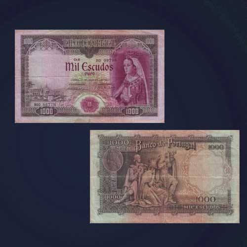 The Banco de Portugal issued 9 different denominations of Portuguese Escudo banknotes, including thi...