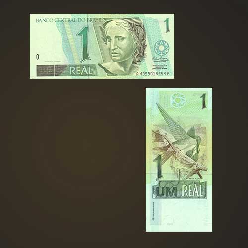 This one Brazilian Real banknote was one of eight distinct denominations of Brazilian Real printed b...