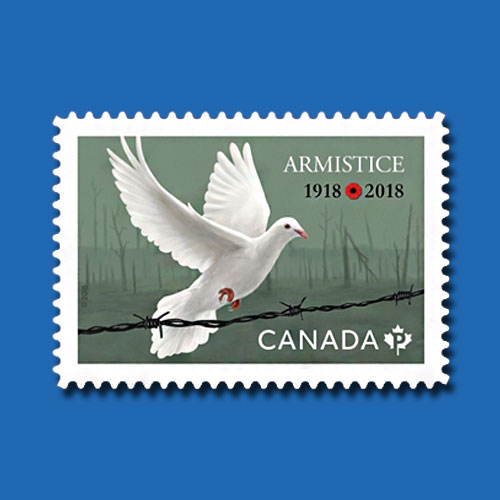 Canada Post remembers the 100th anniversary of the truce that ended World War I with a new stamp iss...