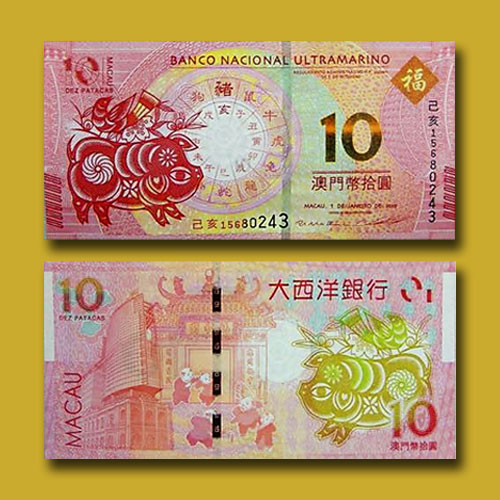 The Year of the Pig Celebrated on Banknotes from Macau