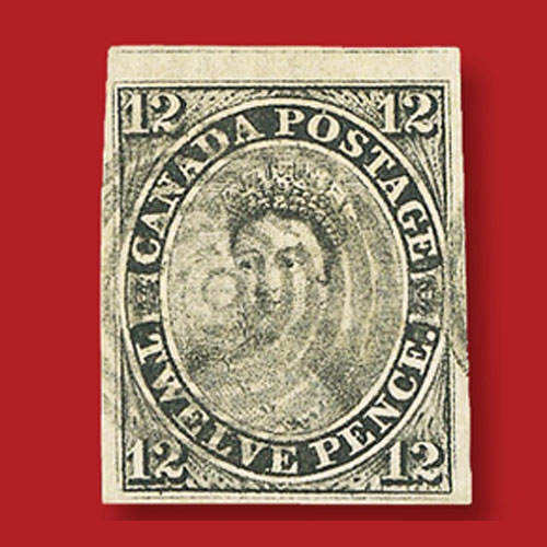 Spink USA auctioned two black Queen Victoria stamps of Great Britain and Canada during the Philateli...