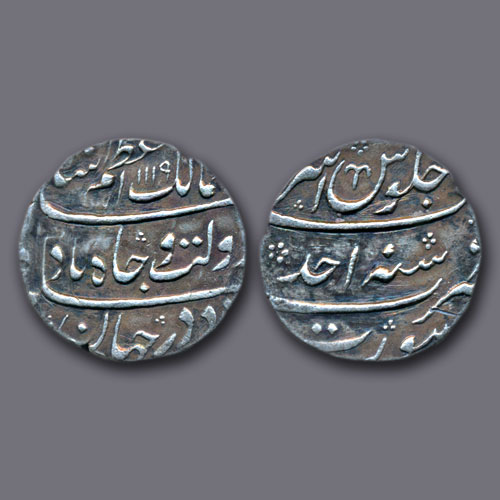 This silver coin was issued by ruler Muhammad Azam Shah of Mughal Empire during the first year of hi...