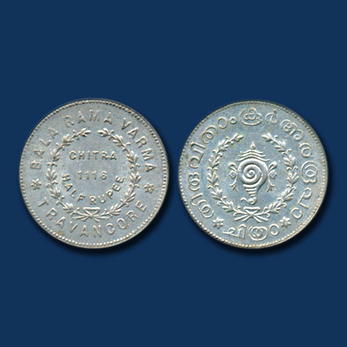 Silver Half-Chitra of Princely State Travancore