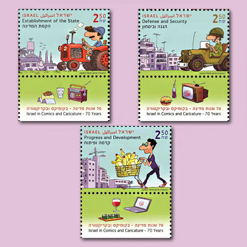 Israel post celebrates 70 years of Independence with an entertaining and informative set of three st...