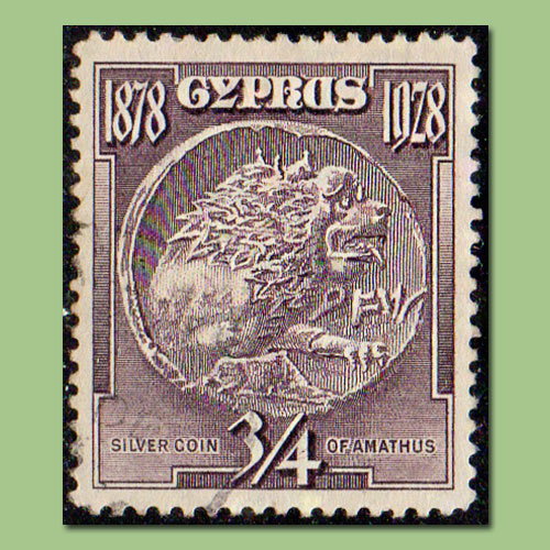 Issued in the year 1928, the stamp of Cyprus depicting a silver coin of Amathus was one among the fi...
