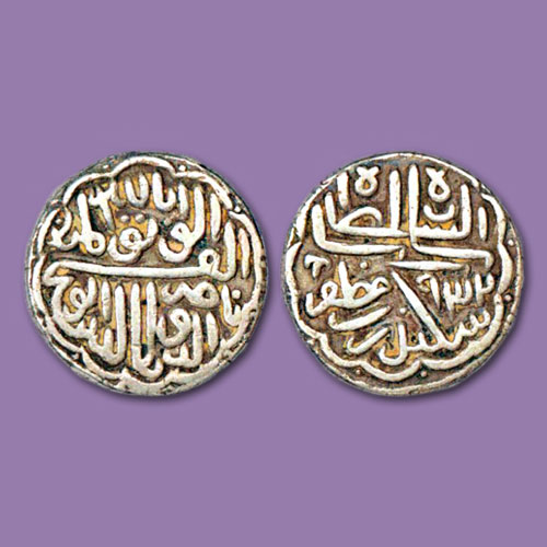 Silver double Tanka of Nasir al-Din Sikandar Shah