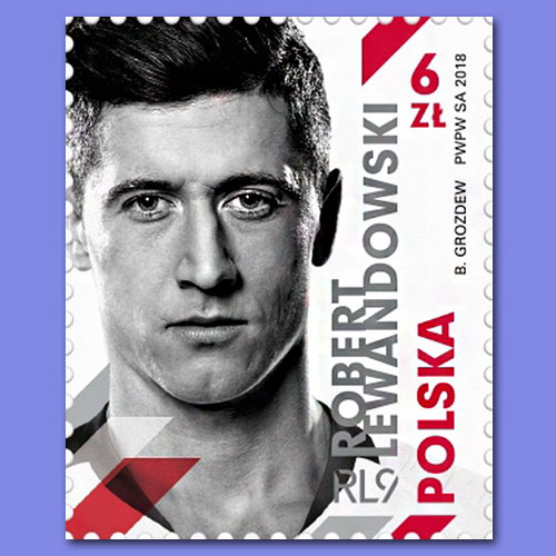 This Polish stamp features one of the best centre-forwards in the world, Robert Lewandowski. This st...