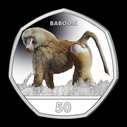 Baboon on Latest Coloured Coin from Gibraltar