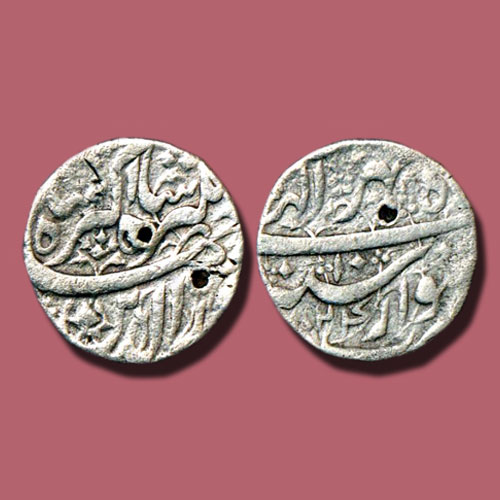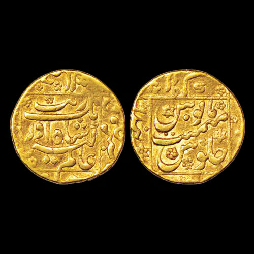 This gold Mohur of square area type shown beside was minted during the reign of Aurangzeb. The obver...