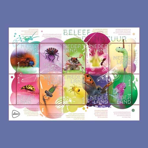 10 se-tenant stamps would be released by the Netherlands featuring images of insects. They belong to...