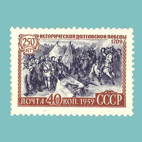 250 years of historical victory in Poltava withdrawn stamp