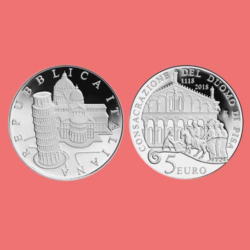 Italy released a €5 coin honouring the anniversary of the consecration of the Medieval Cathedral o...