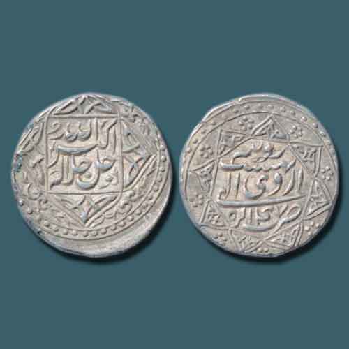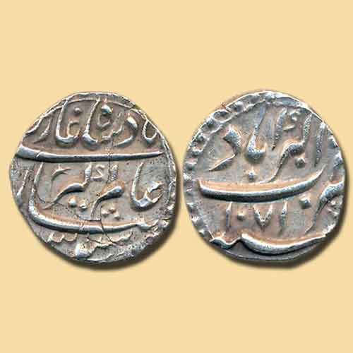 This silver Quarter Rupee was issued by Mughal Emperor Aurangzeb, it was sold for INR 43,000 by Oswa...