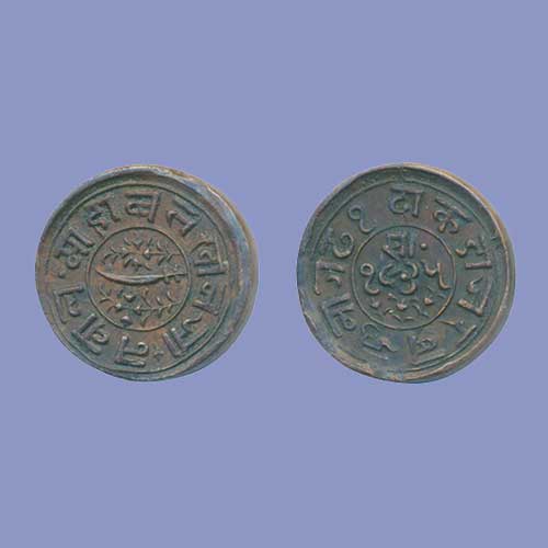 This copper Paisa of Dungarpur Princely State was issued in the reign of Maharawal Lakshman Singh in...