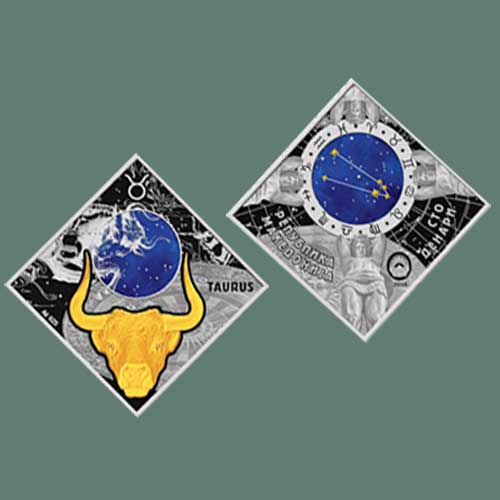 Macedonia released the fifth coin in its Zodiac Sign Series representing Taurus. Gold printing, 3-D ...