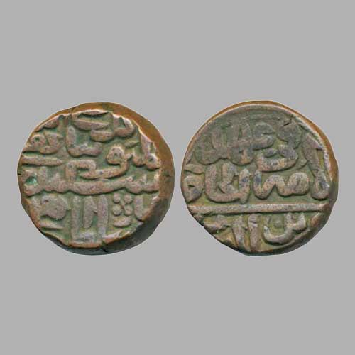 This is an extremely rare Billon Jital of Nasir Al Daula Ibrahim. It depicts a couchant bull with a ...