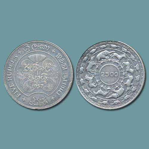The central bank of Ceylon issued a 5 Rupee coin in April 1957. It was issued to commemorate the 250...