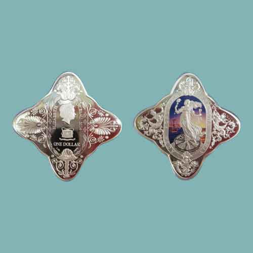 This floral designed silver coin was issued by Tokelau, an island country in the Pacific Ocean. The ...
