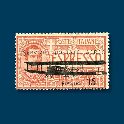 One of the only five existing examples of a 1922 Italian airmail stamp will be offered by Cherryston...
