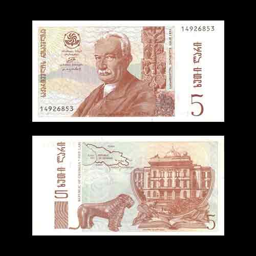 The National Bank of Georgia issued this 5 Georgian Lari depicting Ivane Javakhishvili in 2002. The ...