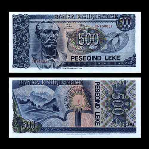 The Banka E Shqiperise issued Albanian Lek banknotes issued these 500 Albanian Lek banknotes that de...