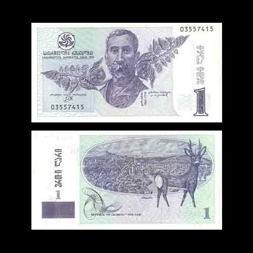 The National Bank of Georgia issued this 1 Lair depicting; Georgian famous Painter Nikko Pyromania i...