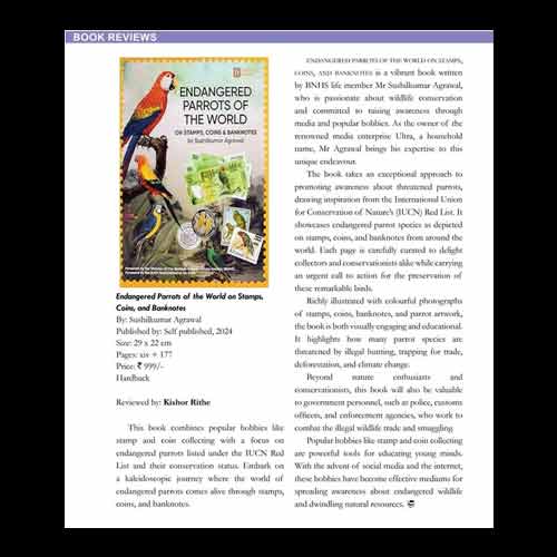 We are happy to share the review of our CMD Shri Sushilkumar Agrawal's book 'Endangered Parrots of the World On Stamps, Coins, and Banknotes' by Shri Kishore Rithe, Director of world-renowned Bombay Natural History Society (BNHS).The article was published in Hornbill magazine by BNHS in the October-November 2024 issue.