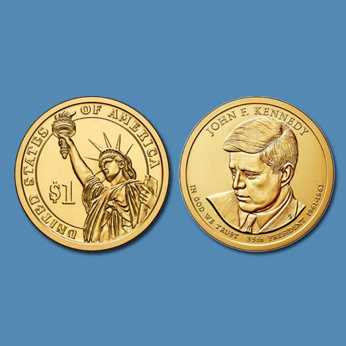 John Fitzgerald Kennedy is also known by his initials JFK. He was an American politician who served his country as 35th president of United States of America from January 1961 until his assassination in November 1963. He was the youngest man to be elected as president of United States of America and also the first Roman Catholic to hold presidential office. After being elected as the President of U.S; he faced the number of foreign crisis, especially in Cuba and Berlin but he managed to secure such achievements as the Nuclear Test-Ban Treaty and the Alliance for Progress. He also led a renewed drive for public service and eventually provided federal support for the growing civil rights movement.United States of America had issued this one dollar with depicts the image of ‘State of Liberty’ with the inscription ‘UNITED STATES OF AMERICA’ and 1$. The reverse side of the coin depicts the image of John F. Kennedy facing towards left in the centre; with an inscription ‘JOHN F. KENNEDY written on the tip and the inscription ‘IN GOD, WE TRUST 35TH PRESIDENT 1961-1963’ at the bottom.