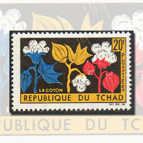 In 1959, approaching independence, the country issued its first stamps omitting the letters RF standing for "République française", French Republic. Hence, the Postal History of Republic of Chad began. The stamp that depicts cotton is one of the important stamps of the country.