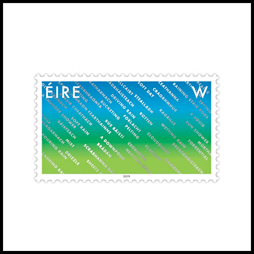 On 25th February, Ireland’s An Post released a new postage stamp to celebrate the country’s rainy season. The stamp depicts blue sky, green fields and metallic silver raindrops which are actually microscopic words in the Irish and English language denoting generic expressions of rain. The ‘W’ letter suggests that the stamp is meant for international posting.Expressions and words shown on the stamp include: trying, raining stair rods, a squib, sun shower, soft day, torrential, wetting rain, rotten, cloudburst, bucketing, belting, a downpour, soft rain, a thundershower, mist, drizzle, pouring rain and more. A soft day means a misty day, spitting means few drops of rain and lashing means diagonal hard rain.