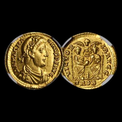 A Gold Solidus of Magnus Maximus is being offered at ANA World’s Fair of Money Auction that will t...