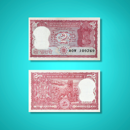 The 2 rupees note features a bust of the Bengal tiger and Reserve Bank Seal. The front side of the n...