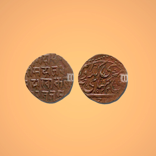 The coin represents the unity of scripts as it has Devanagari and Persian legends together. The copp...
