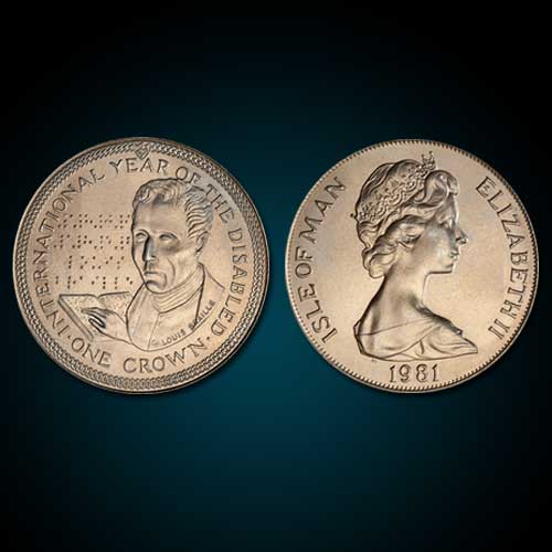 The first coin with Braille was the 1 Crown from the Isle of Man commemorating the International Yea...