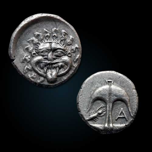 Apollonia Pontika was a colony of Miletos. The main types for the city's coinage were a gorgoneion -...
