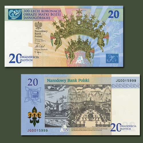 A 20-zloty banknote commemorating the 300th anniversary of the coronation of the Icon of Our Lady of...