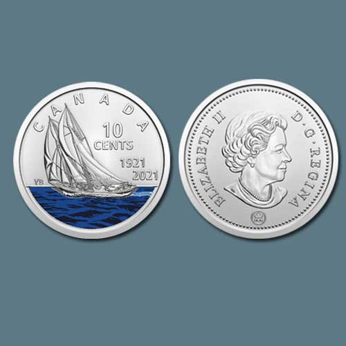 Canada celebrates the centennial of the Bluenose schooner with a new design for the 10-cent coin. Fo...