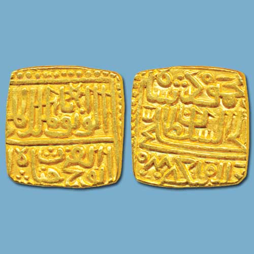 This Gold Tanka issued by Ghiyath Shah of Malwa Sultanate was sold for INR 51,000 at Todywalla Aucti...