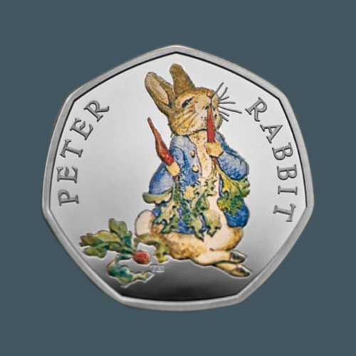 A new series of 50 pence circulation coins and silver-proof collector versions featuring coloured ch...