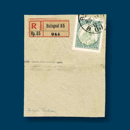 A rare 5,000-korona error stamp from Hungary issued in 1923 with dark green and yellow-green Madonna...