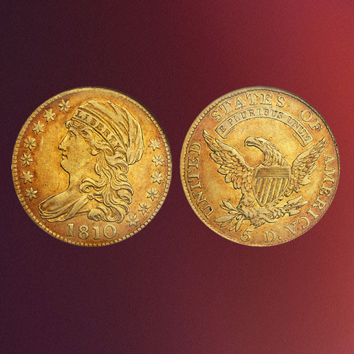 Beautifully Toned 1810 Capped Draped Bust Gold $5 Half Eagle