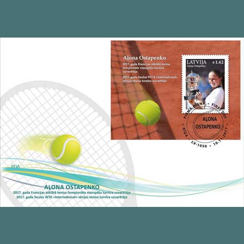 Latvia released a special postage stamp and envelope featuring the Roland Garros tennis champion Jel...