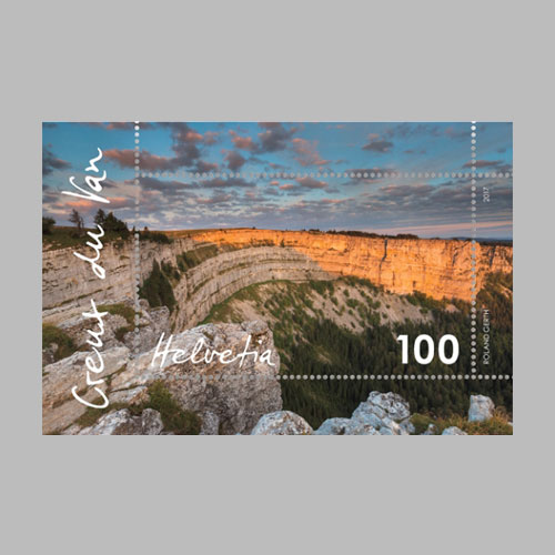 Creux du Van on Latest Souvenir Sheet from Switzerland