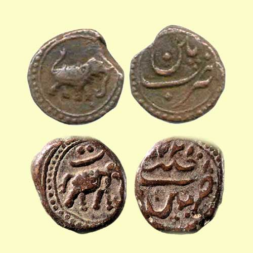 Some coins issued by Tipu Sultan lack dates. The obverse of these coins features an elephant, while the reverse is inscribed with the mint name.