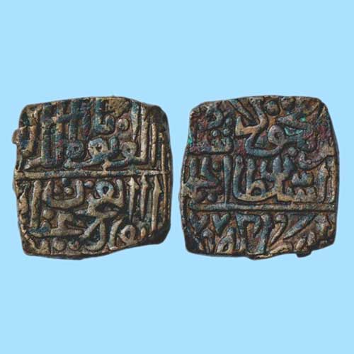 Malwa Sultan Ghiyath Shah issued copper coins in two different weight standards: 80 rati series and 100 rati standard.Copper Double Falus issued under the 80 rati series comes in two types, distinguished by their legends. One type features the 'Al-Wathiq' legend, while the other displays the 'Al-Sultan' legend.