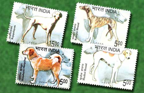 The Mudhol Hound, also known as Caravan Hound, is an Indian breed of dog of the sight hound type. The feathered variety is commonly referred to as a Pashmi. It is a common companion amongst village folk in India's Deccan Plateau, who use the dog for hunting and guarding. These dogs are very hardworking, productive and consistent on the field even in harsh conditions. They are extremely loyal if you are kind to them but are not very friendly and do not liked to be touched by strangers. If you don’t treat them well they might develop a nervous or vicious nature, either of which are difficult to deal with. The four stamps of India that were specially issued, portrays an image of this dog.